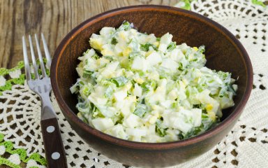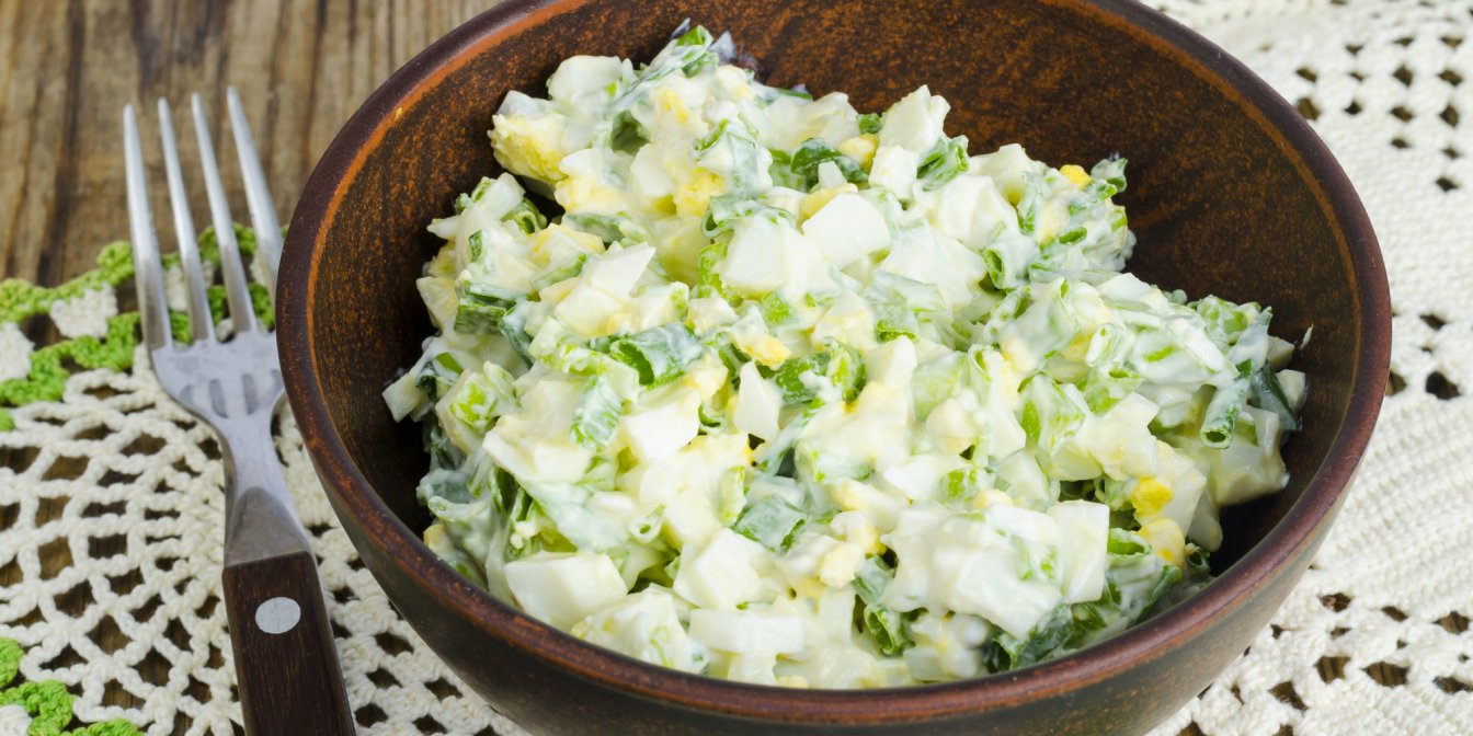 Классическое соединение вареных яиц и зеленого лука в быстрый салат — это просто добавить майонез, который можно приготовить собственноручно.