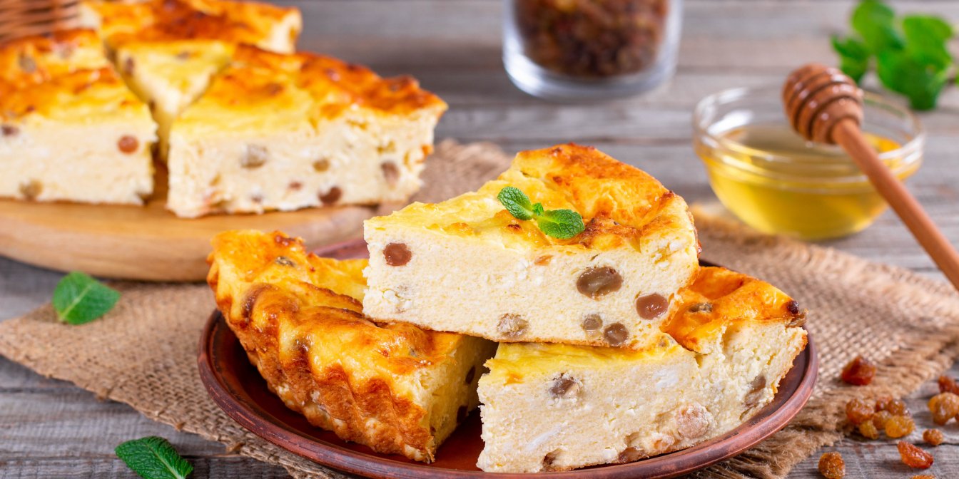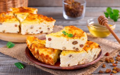 Конечно, без привычной с детства запеканки из творога мы не представляем нашу неделю запеканок, ведь это сытно, легко и вкусно! Для приготовления блюда вам понадобится всего 35 минут, советуем заранее замочить изюм, если вы хотите его использовать.