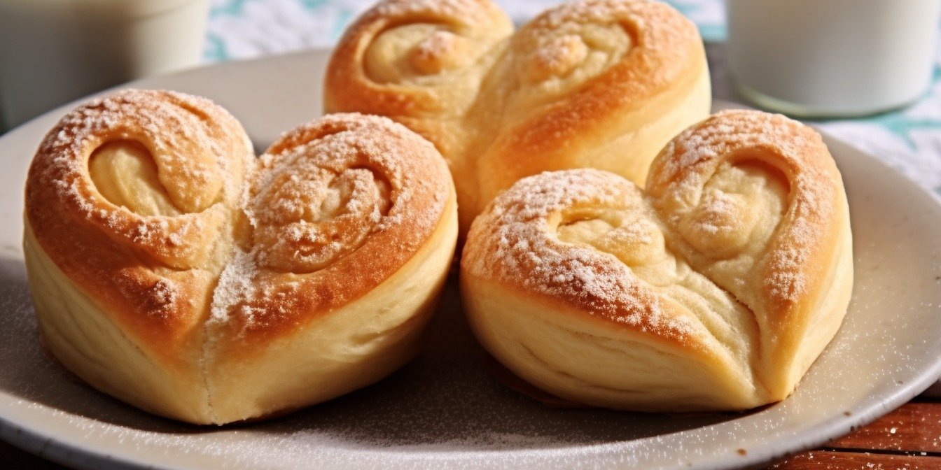 Разделите тесто на равные части, скатайте из них шарики. Каждую раскатайте и положите внутрь несколько столовых ложек начинки, разровняйте. Скрутите рулетик. Сложите его вдвое, соединив края и защипнув. Переверните рулет на бок и сделайте надрез вдоль, не доходя до края. Раскройте рулетик, чтобы сформировать из него сердечко. Повторите со всеми шариками теста.