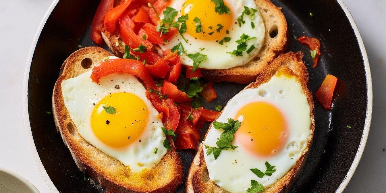 Наш вариант подразумевает обжаривание жареного красного перца с чесноком перед приготовлением хлеба и яиц. Затем чесночный перец выкладывается на яйцо. Мы думаем, что Лоретта это одобрит. Повторите также тост с авокадо и тунцом, чтобы разнообразить свою утреннюю рутину.