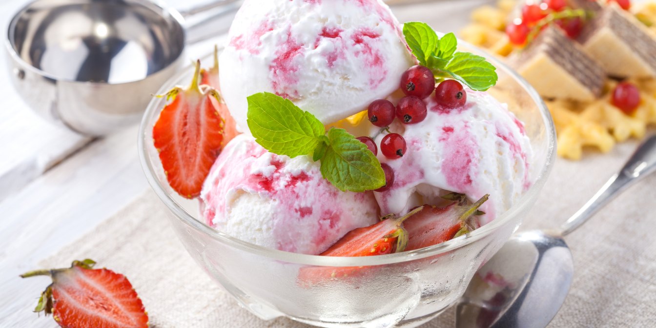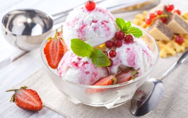 А теперь, модный хит лета — мороженое из красной смородины со сливками и йогуртом.