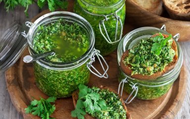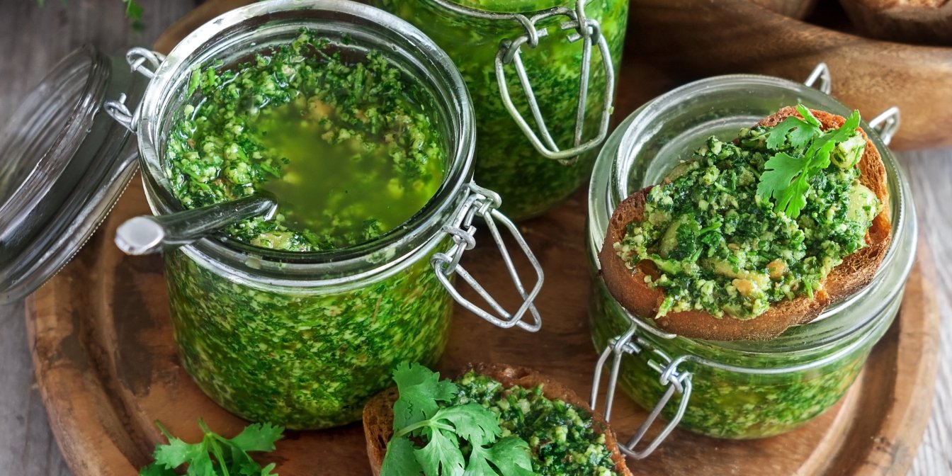 Мы предлагаем приготовить из кинзы ароматный соус песто. Сделать это легко, единственное, что требует особого подхода — кинза должна быть хорошо промыта.