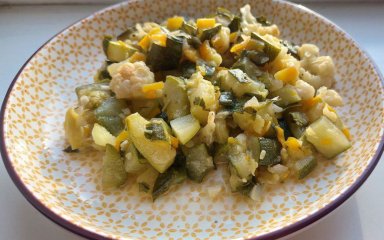 Этот простой рецепт овощного рагу с цветной капустой и цукини мы получили от друзей, которые приготовили рагу на ужин в жаркий июльский день.
