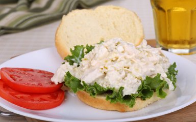 Сварите с вечера за 20 минут курятину и яйца, и утром вам останется только смешать салат, заправить его очень простым соусом и собрать сэндвичи.