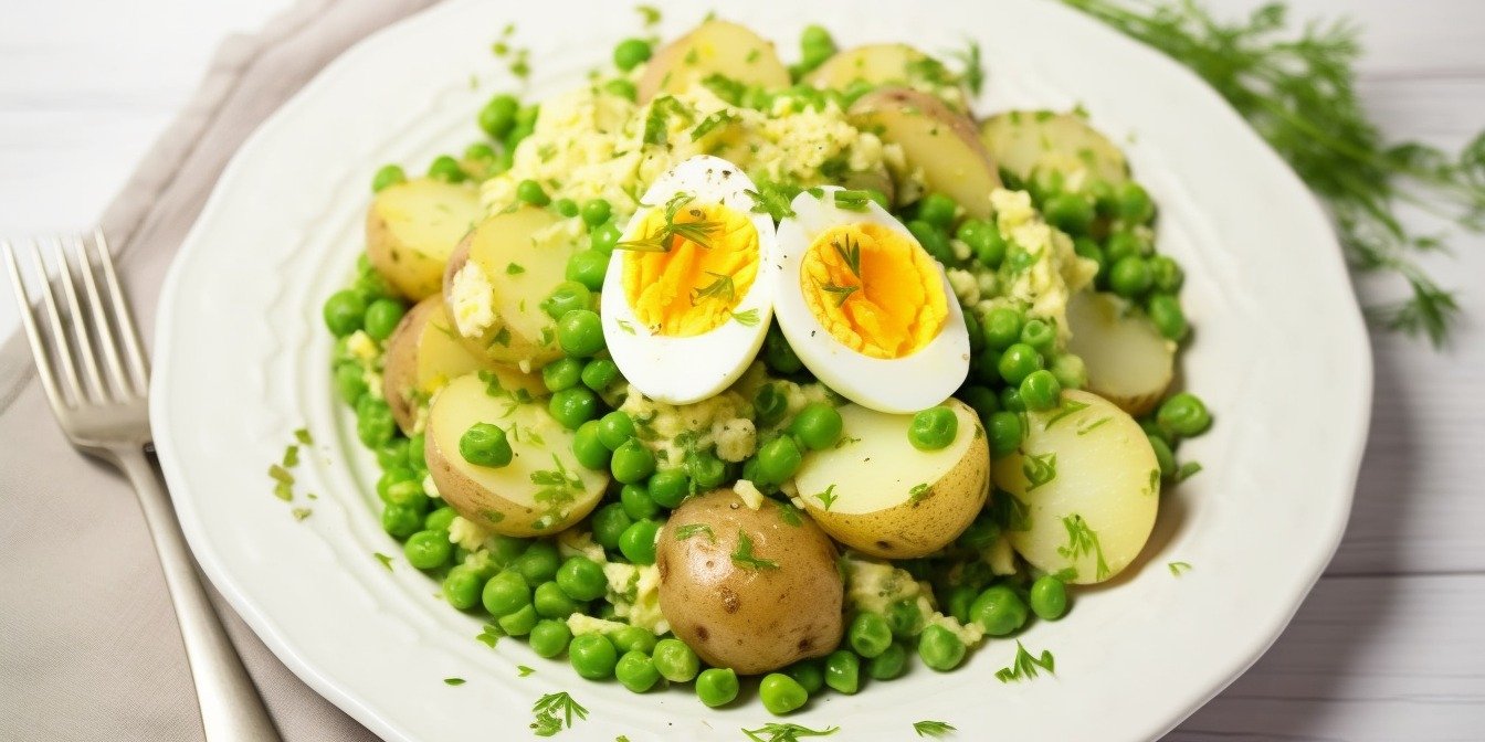 Зеленые салаты обычно готовят из овощей, которые, очевидно, имеют зеленый цвет: салатных листьев, шпината, руколы, горошка, огурцов, спаржи и т. д. В этом рецепте вам понадобятся салатные листья, зеленый горошек, огурец и зелень, а еще молодой картофель и яйца для питательности и более мягкого вкуса.