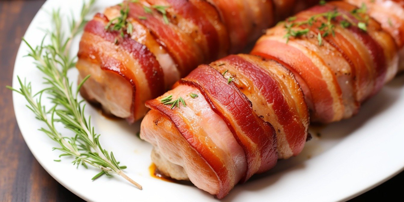 Эти куриные котлеты завернуты в слайсы бекона, придающего фаршу интересных копченых нот.