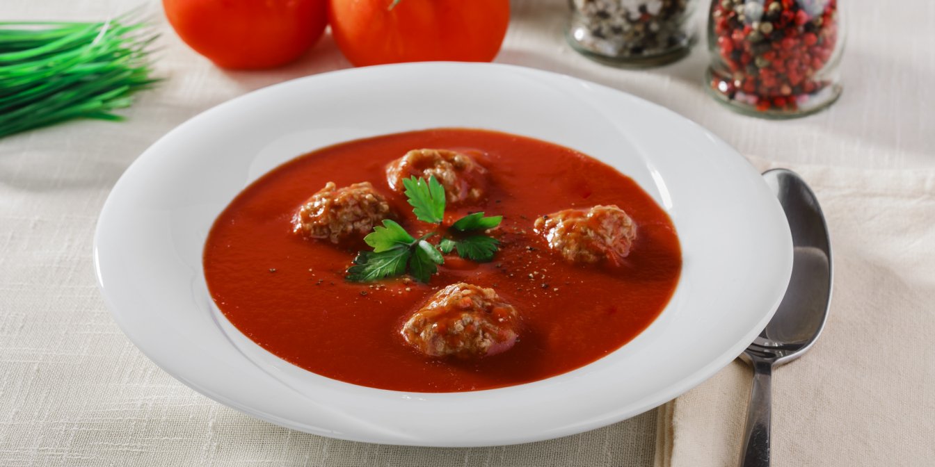 Основной ингредиент этого томатного супа — это фрикадельки. Вы можете приготовить их из любого мяса: говядины, свинины, курятины или даже рыбы. А для вегетарианских и веганских версий подойдут грибы, фасоль, бобовые, овощи.