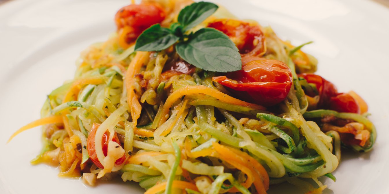 В этом блюде мало калорий и много пользы, ведь оно состоит из кабачков, моркови, лука, томатов и чеснока. Тонкая вермишель гармонирует с измельченными на терке овощами и наполняется их вкусами. Блюдо получается приятное на вид и имеет интересную текстуру. Оно быстро и легко готовится и в качестве гарнира сочетается и с мясом, и с рыбой. Советуем попробовать эту вермишель с овощами с жареной рыбой в томатном соусе, приготовление которой тоже не займет много времени.