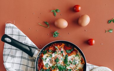 Вдобавок ко всему, мы не могли забыть о яйцах. Быстрый способ приготовить их как второе блюдо для действительно сытного и вкусного ужина — обжарить в томатном соусе. Это блюдо родом с Ближнего Востока называется шакшука и подается с хлебом или лепешками. Вы можете подавать ее в сковороде или в порционных кокотницах, если у вас есть гости.