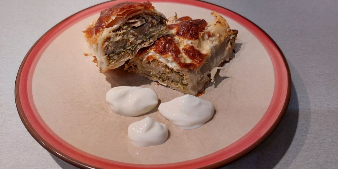 Закусочный пирог из лаваша «Лазанья по-киевски»
