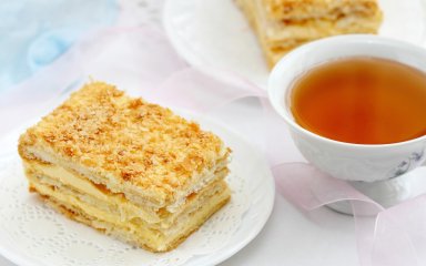 Простой пирог с манкой, творогом и яблоками — отличная пара к чаю или кофе.