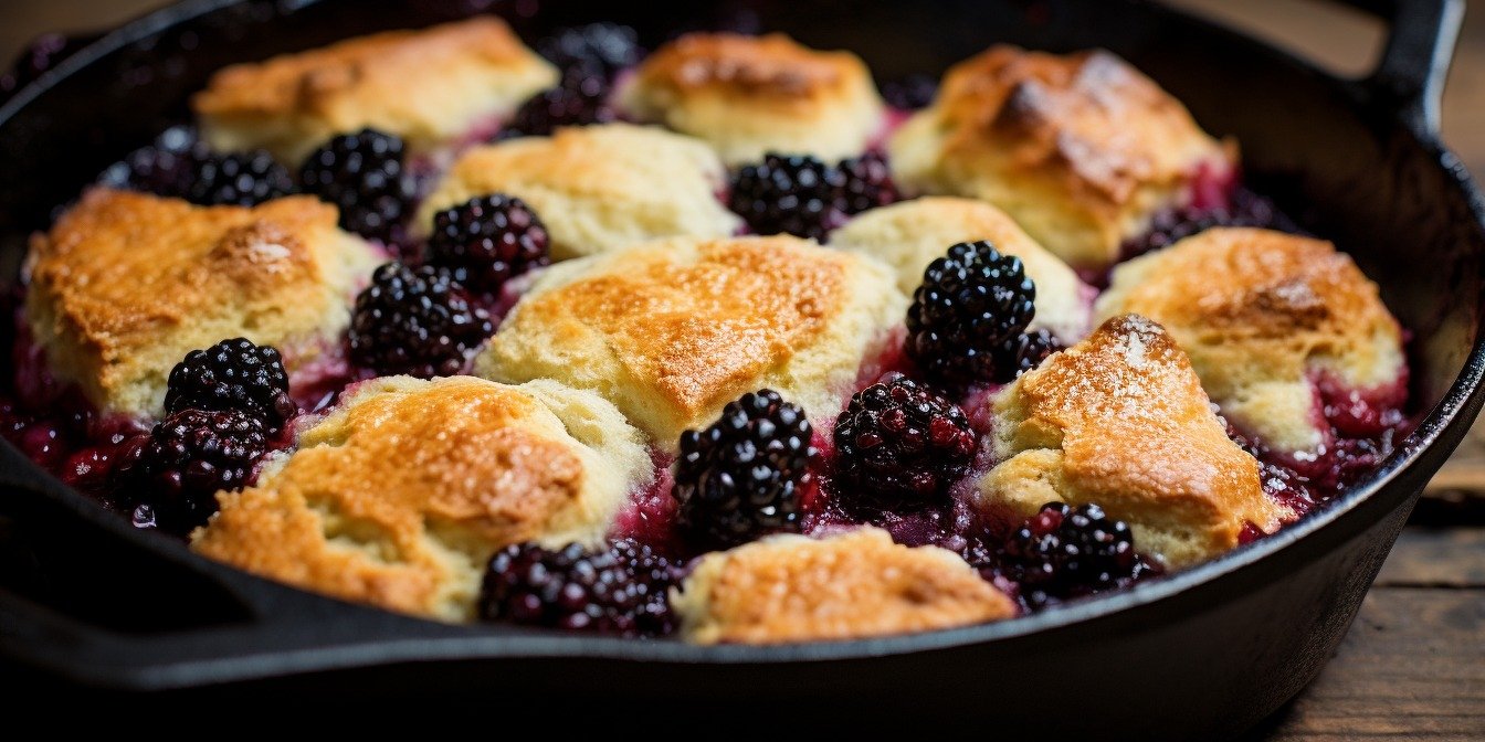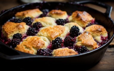 Этот рецепт мы нашли у диетолога Татьяны Лакусты. Она пишет, что для коблера можно брать любые ягоды и фрукты, но с ежевикой он необыкновенный.