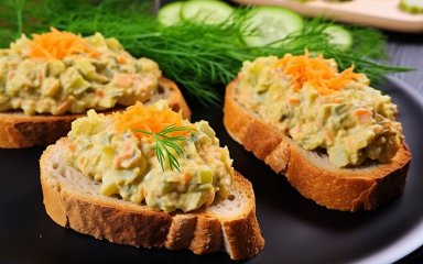 SHUBA рекомендует использовать майонез для этого рецепта, однако вы можете заменить его жирной сметаной, если хотите. Или приготовьте домашний майонез по простому рецепту. Такую намазку следует сразу съесть, но если вы приготовили слишком много, положите ее в холодильник — хранить можно в закрытой таре до двух дней. Приготовьте консервированные огурцы по-домашнему и сделайте намазку именно из них. А вот еще несколько вариантов брускетт для вас: