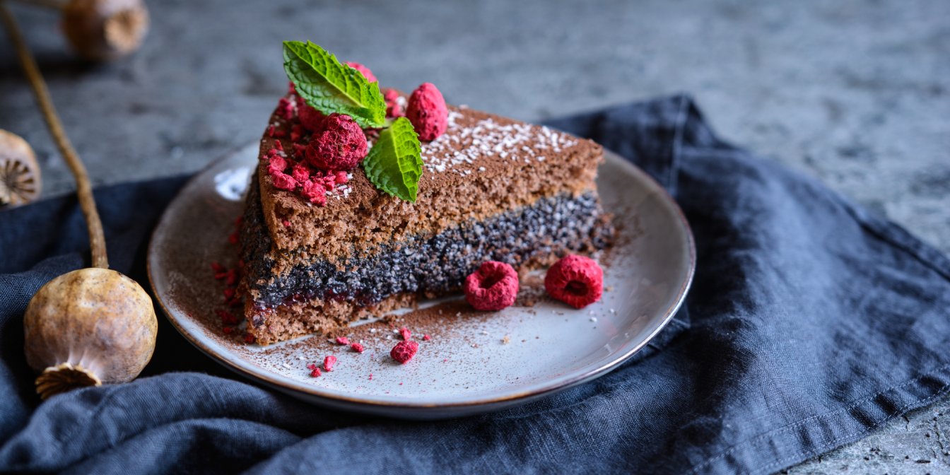 Пышный корж выпекается из заливного макового теста и еще горячий покрывается джемовой прослойкой и шоколадной глазурью.
