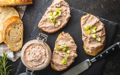 Его можно есть как паштет, то есть с хлебом, овощами или блинчиками. Можно, к примеру, на четвертинки перца положить порцию паштета, добавить зелень, несколько оливок и обычная закуска готова. Приятного аппетита!