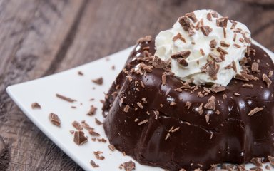 Шоколадный пудинг можно украсить ягодами, шоколадным или фруктовым соусом, сливками или вареньем, например, сливовым джемом.
