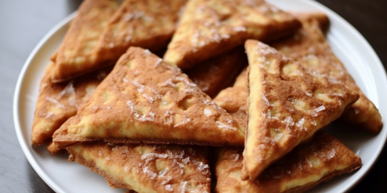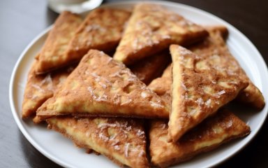 Выложите треугольнички на бумажное полотенце, чтобы удалить лишний жир. Сложите кругом на блюдо и подавайте горячими.