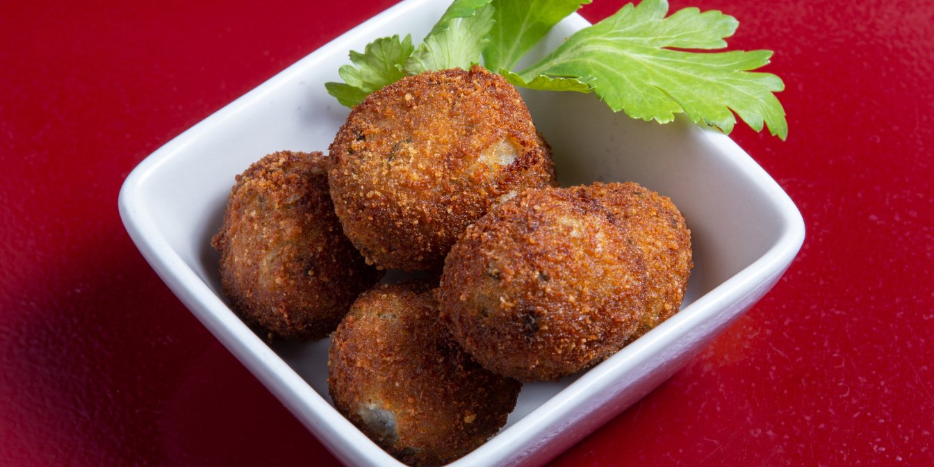 Отварите шарики в кипящей подсоленной воде до поднятия на поверхность, переложите в сковороду с панировочными сухарями, хорошо обваляйте, достаньте и подавайте.