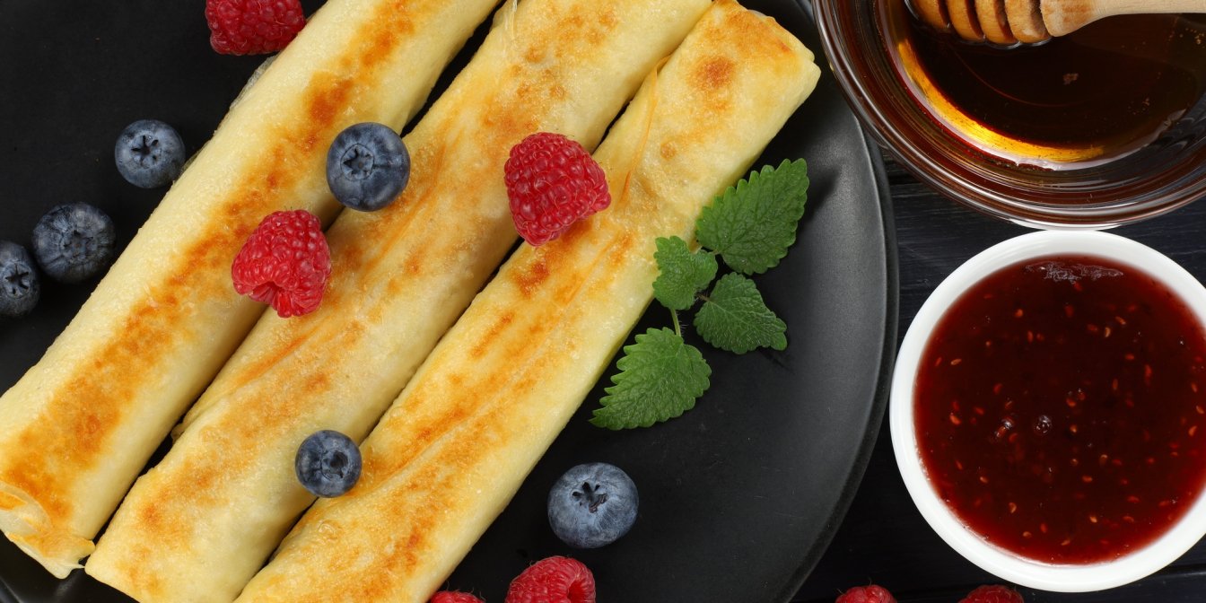 Готовые налистники разрежьте пополам.