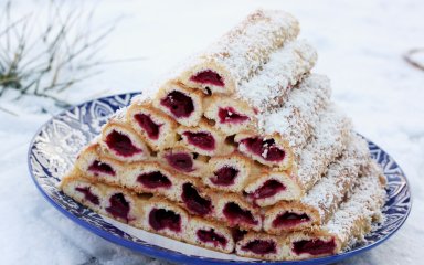 SHUBA предлагает повторить рецепт торта с вишнями от пользователя TikTok с ником cook_julija_simonchuk. Вы можете приготовить масляный крем или использовать крем со сгущенкой для перемазывания трубочек. Вишни выбирайте свежие или замороженные — главное, чтобы у них не было косточек.