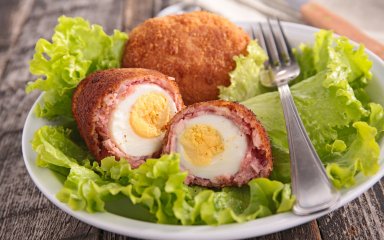 В этом рецепте используются перепелиные яйца, которые нужно «закатать» в фарш, после чего обжарить во фритюре. Если вы хотите более здоровую версию этого блюда, советуем обратить внимание на яйца по-шотландски, запеченные в духовке.