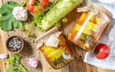 Быстро, недорого и вкусно — так мы скажем о лечо из кабачков. Среди всех рецептов лечо на зиму этот посоветуем первым. Нам нужно 3 кг кабачков, болгарский перец и чеснок. Нарезанные овощи потушим полчаса, а затем закрутим в банки.