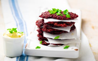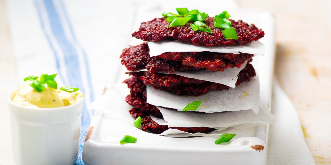 Эти деруны из свеклы и картофеля можно есть практически в любое время (на поздний завтрак, обед и ужин!). А еще их быстро и легко приготовить: нужно всего шесть основных ингредиентов и 30 минут!