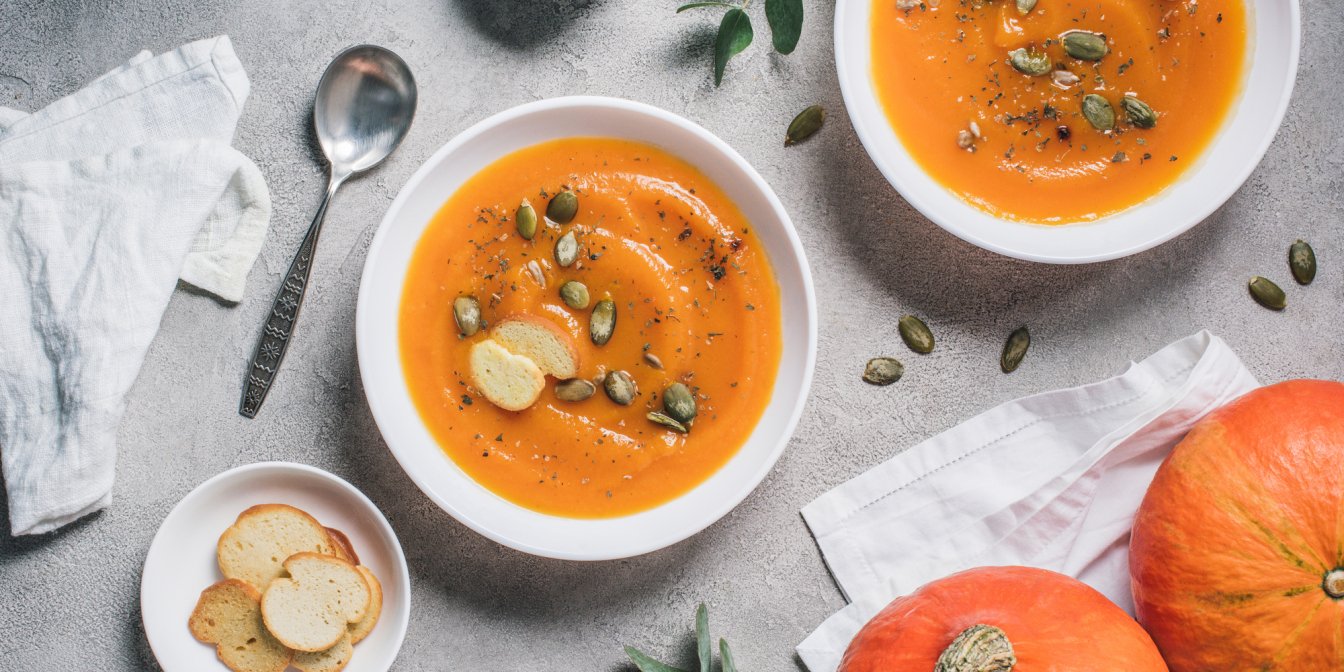 Осень — яркая пора приготовления батата и тыквы. Именно из тыквы вкуснейшими получаются супы.