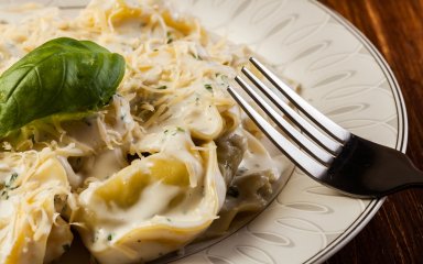 Вкусная и питательная паста тортелини с особенно нежным соусом станет идеальным блюдом для романтического ужина под бокал любимого вина.