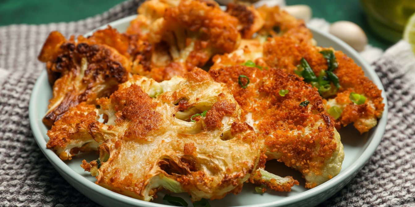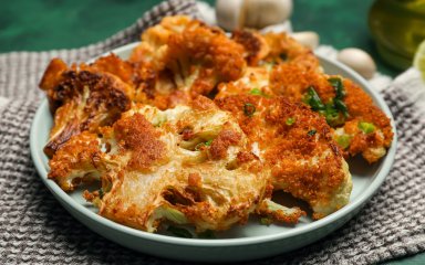 Стейки из цветной капусты с хрустящей пряной корочкой и мягкой серединой — отличный гарнир и вкусная закуска. Готовится блюдо очень просто.