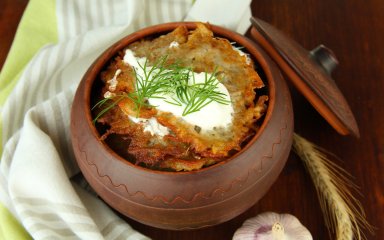 Деруны с грибами в горшочке — очень вкусное и сытное украинское блюдо