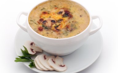 Это же касается грибов — можно взять вешенки, а можно более насыщенные по вкусу и аромату шампиньоны. Суп можно варить на воде или на овощном бульоне.