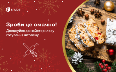 Присоединяйтесь к команде SHUBA и узнайте, как испечь настоящий рождественский штоллен. 16 декабря вы увидите весь процесс своими глазами и сможете испечь штоллен с подсказками опытной кулинарки в режиме онлайн. Участие в мастер-классе — бесплатное.