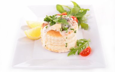 Потенциал слоеного теста огромен. Из него можно быстро и легко сделать много блюд — от "Наполеона" до хачапури. Это праздничная закуска из самых доступных ингредиентов. Масса из крабовых палочек и плавленого сыра красиво разместится на подушечках — хрустящих квадратиках слоеного теста.