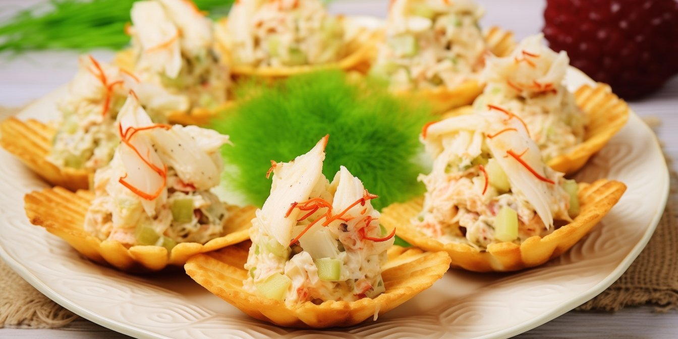 Эффектная и вкусная новогодняя закуска из крабовых палочек в ракушках из теста — видеорецепт