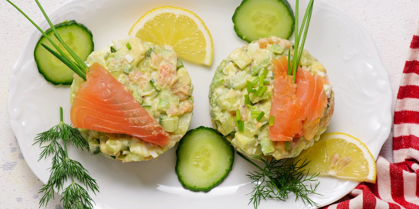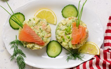 На Новый год хочется попробовать что-то особенное. Приготовьте салат с красной рыбой, огурцом и авокадо, заправьте его соусом на основе греческого йогурта, с добавлением зернистой горчицы и нескольких капель лимонного сока. Такой праздничный салат станет звездой стола!