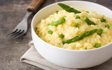 Ризотто со спаржей и зеленым горошком — весенняя версия итальянского блюда