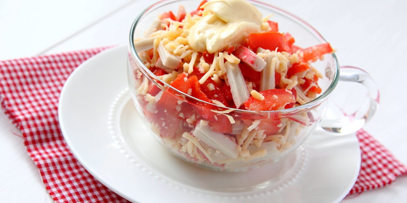 Салат «Красное море» с крабовыми палочками — бюджетно, вкусно, легко
