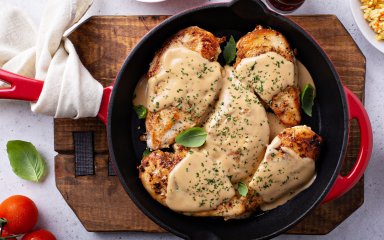 Чтобы жареная куриная грудка была мягкой, ее обычно маринуют. Но на канале Leckerer Kanal предлагают сделать на филе сетчатые надрезы. Это обеспечит более равномерное и быстрое прогревание мяса в сковороде и наполнит вкусами и ароматами приправ при тушении куриного филе в соусе.