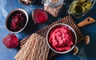 Эта вкусная, свежая и яркая свекольная намазка идеально подходит для перекусов. Если вы возьмете заранее отварную свеклу, на приготовление блюда вам понадобится не больше 5-ти минут! Вы также можете добавить консервированную свеклу, потому что она проста в использовании.