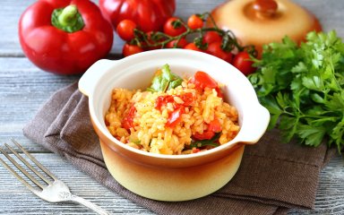 Если говорить о проверенных временем салатах на зиму, то салат с рисом «Завтрак туриста» будет на первых позициях. Кроме вареного риса, нужны морковь, лук, болгарский перец и помидоры. Разогретый зимой салат подавай к блюдам с курицей или мясом.