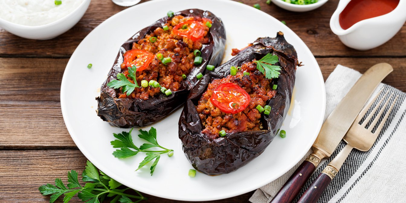 Запеченный баклажан с фаршем — полезное блюдо из нескольких ингредиентов
