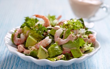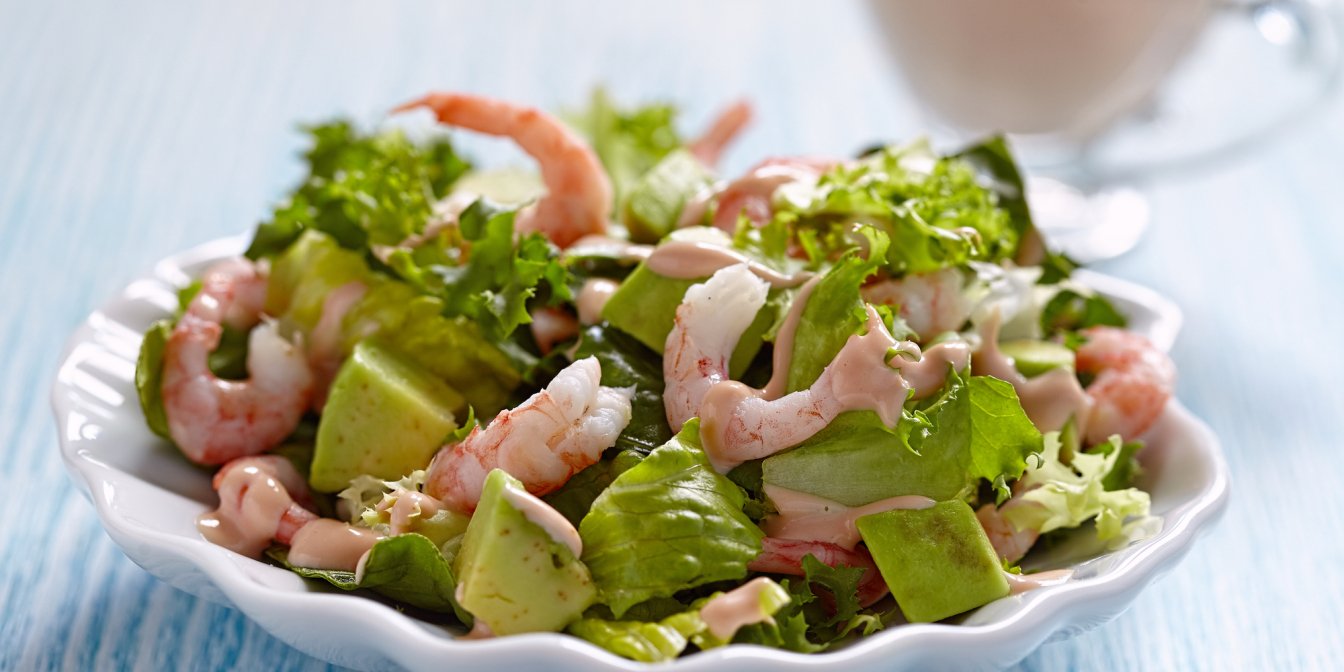 • Используйте для приготовления салата креветки любого размера, спелое, но не слишком мягкое авокадо, и простую заправку из растительного масла и бальзамического уксуса, или масла и цитрусового сока. Можно использовать для заправки готовый соус для креветок, любой микс на основе майонеза или кисло-сладкие соусы.
