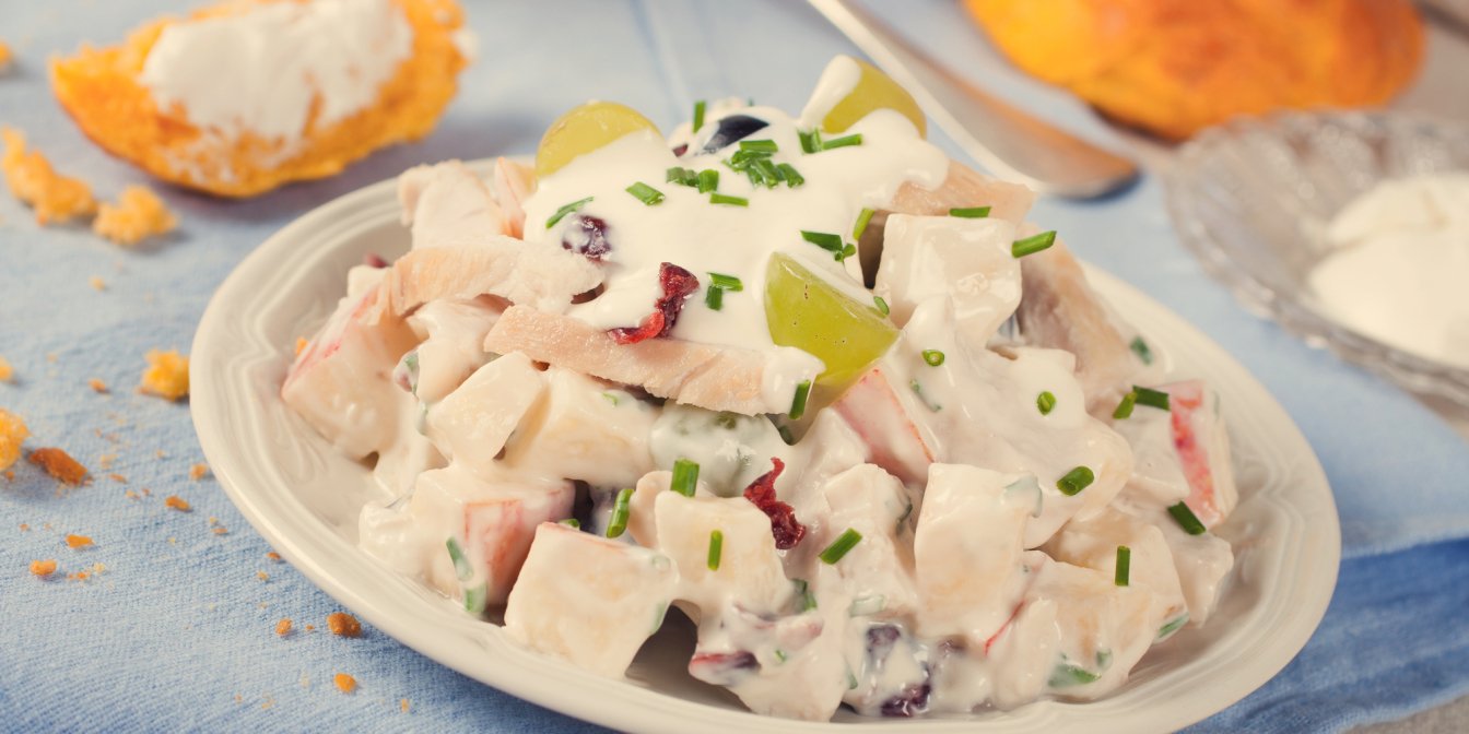 Куриный салат с яблоком и клюквой