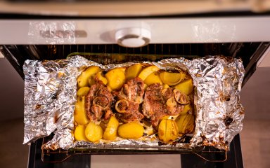 Картофель с мясом в духовке — популярное блюдо из доступных ингредиентов. Вкусный говяжий стейк и картофель, приправленные чесноком и зеленью и запеченные в конвертах из фольги — что может быть лучше?