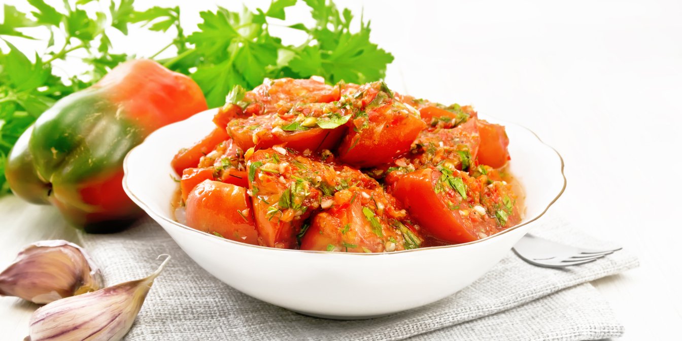 Пикантно-острая закуска к мясу и гарниру: помидоры по-корейски