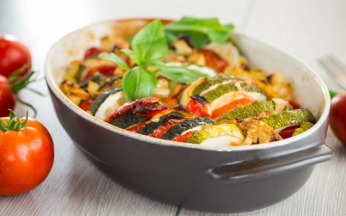 Лето — пора экспериментов с блюдами из кабачков. Можно готовить рагу, салаты и разнообразные запеканки. Самая простая из них требует кабачков, помидоров, тертого сыра, сметаны и специй.