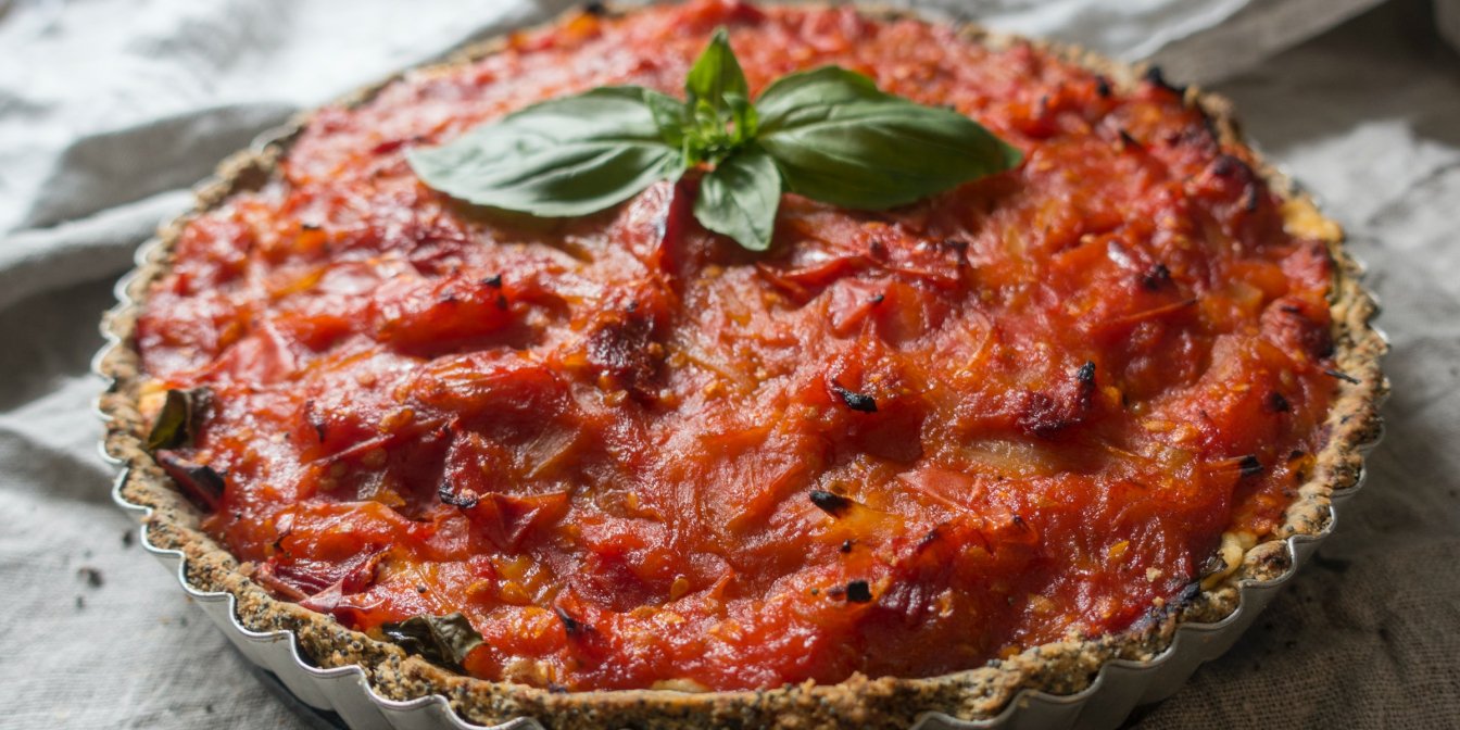 Обычно тарт ассоциируется со сладкой выпечкой — SHUBA писала рецепты яблочного тарта с карамелью, а также с инжиром. Но популярны и соленые торты — с морепродуктами и брокколи или картофельный тарт. Сегодня приготовим еще одну вариацию — томатный тарт.