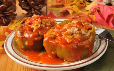 Подготовленный перец нафаршировать начинкой, оставляя около ¼ места.