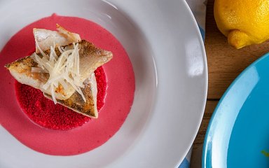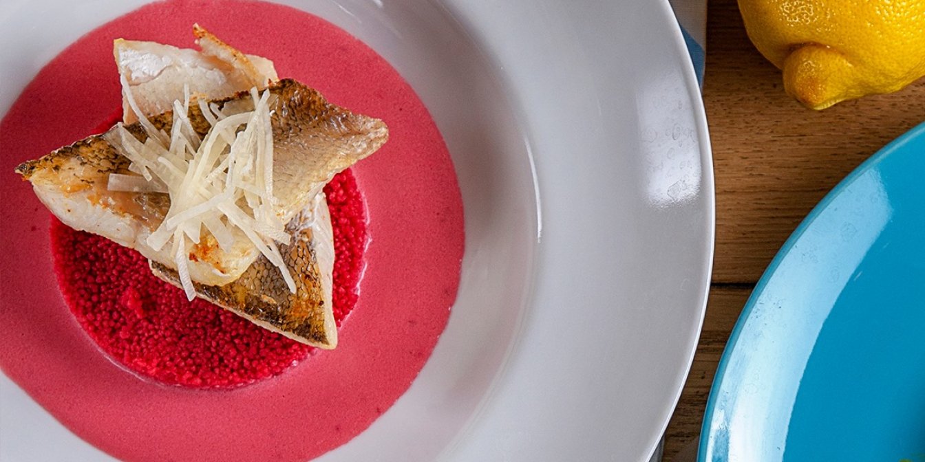Судак с розовым кускусом